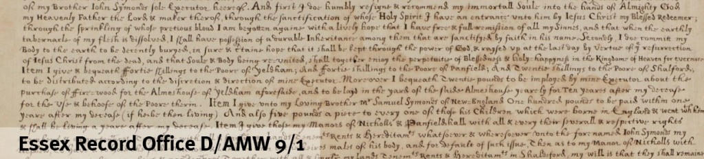 ![It can be surprising to see what testators valued; in 1641 Elizabeth Fuller of Chigwell left her eldest son Henry my longe carte and dunge carte, my ponderinge crose my furnace, my mault quarne. We think the crose must be for religious contemplation and the quarne for grinding grain but it seems an odd mix of bequests. Her second son Robert received my best chest and my best brace [brass] pot which to modern eyes would seem to be the better bequest (D/AEW 21/71).](https://i0.wp.com/www.essexrecordofficeblog.co.uk/wp-content/uploads/2014/10/D-AEW-21-71-01-crop.jpg?resize=584%2C265&ssl=1)