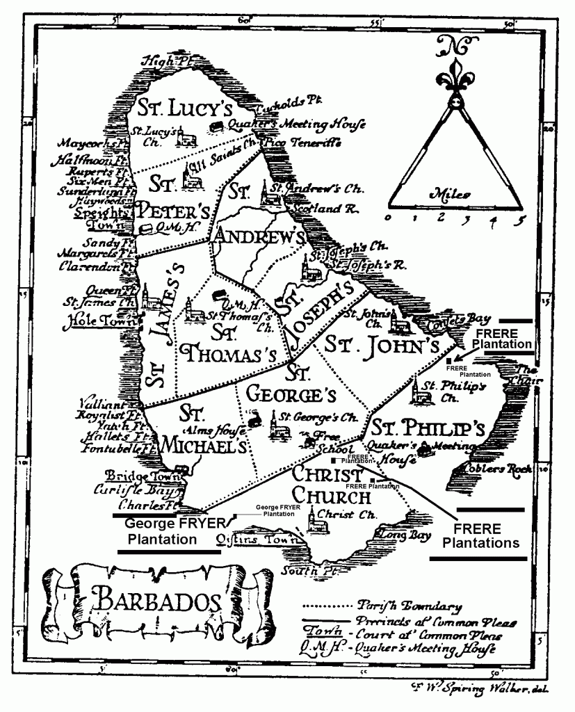 Imprimis I give & bequeath unto Thomas Frere my sonne and to his heires executors administrators & assignes All my estate whatsoever both reall and personall in the Island of Barbadoes which was bequeathed unto mee by mr John Jackson my late brother in law & by Elizabeth Jackson his wife my late sister or by either of them or that I have any right or title unto in the said Island of Barbadoes or else where from them or either of them, Alsoe I give & bequeath unto the said Thomas Frere my sonne and to his heires executors administrators & assignees all my landes plantations and other estate whatsoever both reall & personall in the Island of Antigua commonly called Antego.